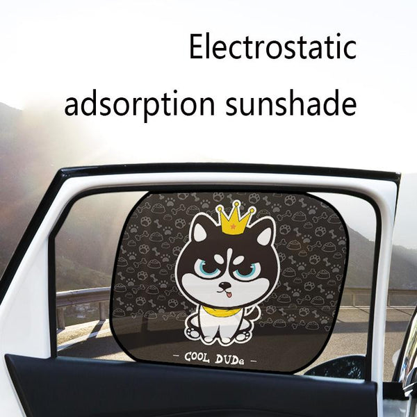 N978 2 Sets Summer Cartoon Car Electrostatic Adsorption Side Window Shade Sticker(One PairTwo ha)