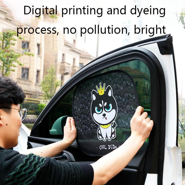 N978 2 Sets Summer Cartoon Car Electrostatic Adsorption Side Window Shade Sticker(One Pair Two ha)