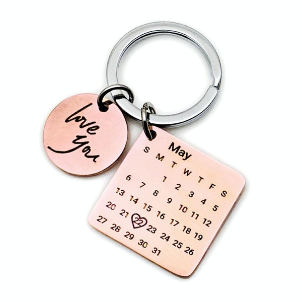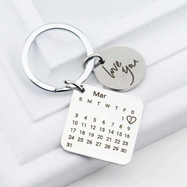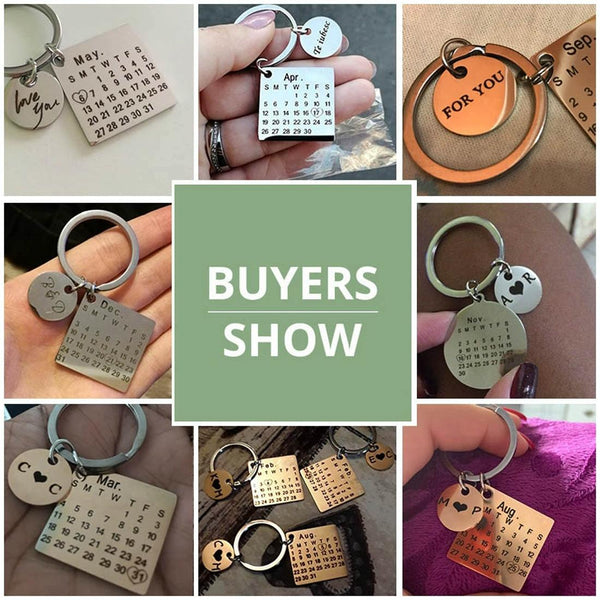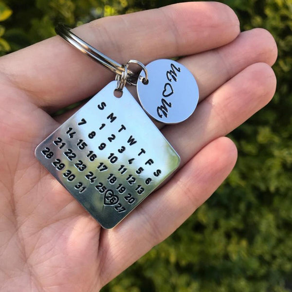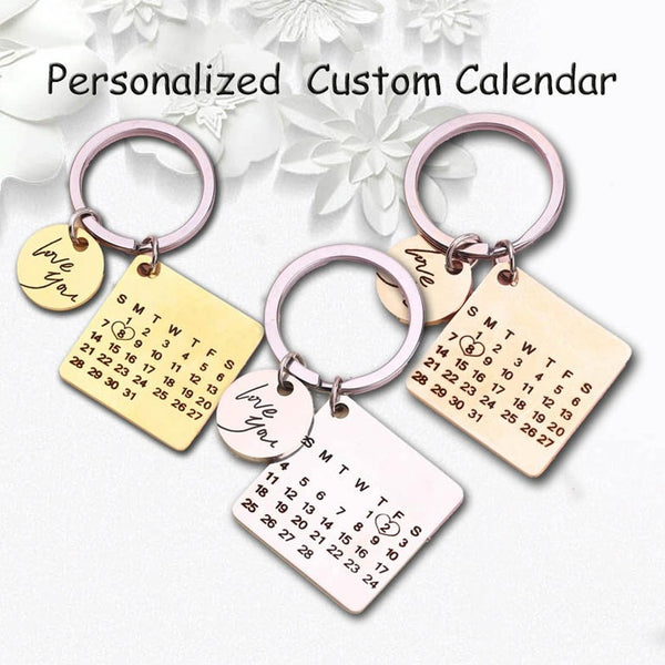 Personalized Calendar Keychain Hand Carved Calendar Keyring Stainless Steel Brelok(Rose Gold)
