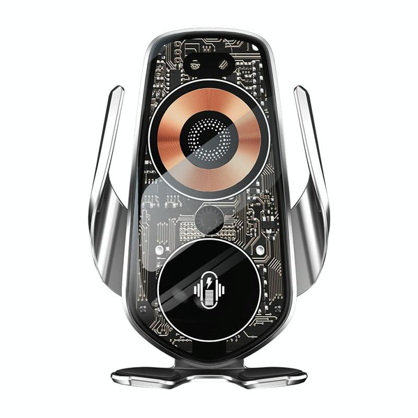 3.After the equipment is powered on with DC5V-12V power supplyand DC5V-12V power supply, the equipment will automaticallyclamp the telescopic arm once, and the blue indicator lightwill turn on and turn red, and the indicator light will be on fora long time. At this time, the device enters the normal standbystate. When the front of the object is 5cm-20cm close tothe device, the device will automatically open its arms. Afterputting the mobile phone into the device, the device willautomatically clamp the mobile phone. At this time, thewireless charging will automatically charge the mobile phone.When charging, the blue indicator light (breathing light) ofthe device will be on. (mobile phone with wireless chargingfunction is required). When you need to take out the mobilephone, you need to touch the front sensing area of the device.and the device will automatically open its arms and take it away