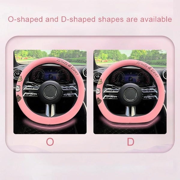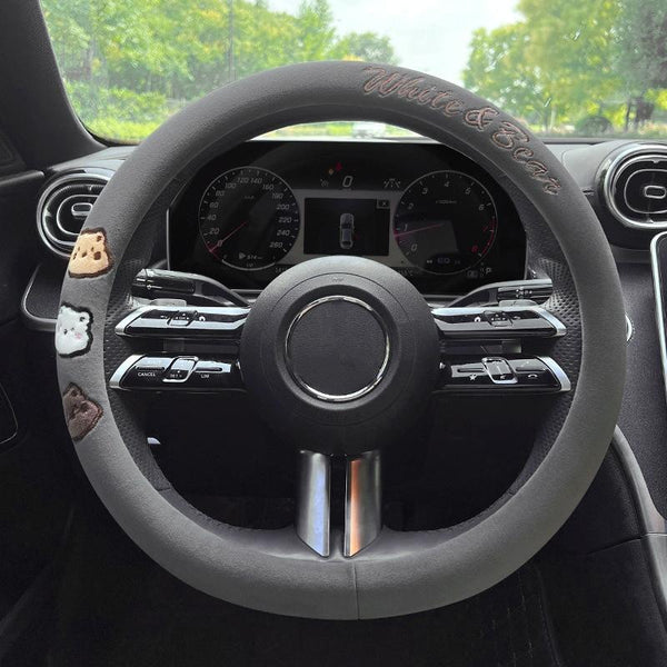 Round Style Car Universal Cartoon Pattern Plush Warm Anti-skid Steering Wheel Cover, Diameter: 38cm (Grey)
