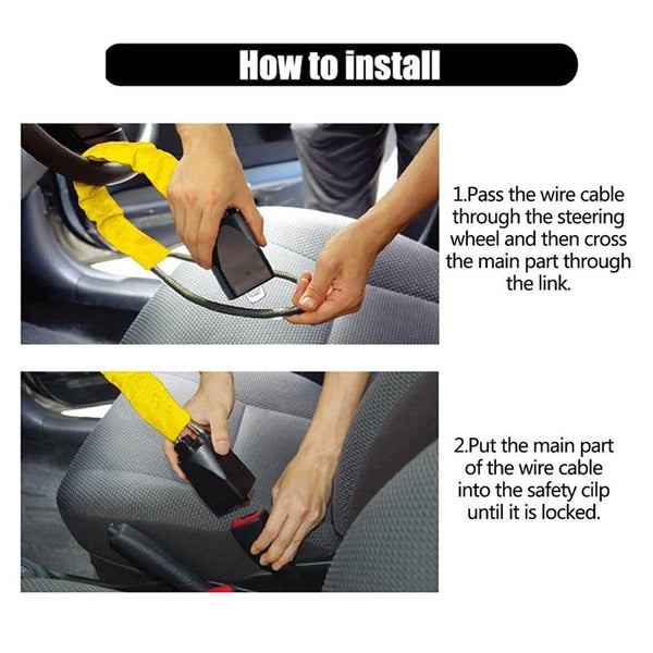 S308 Car Steering Wheel Wire Rope Lock Security Anti-theft Locks(Yellow)