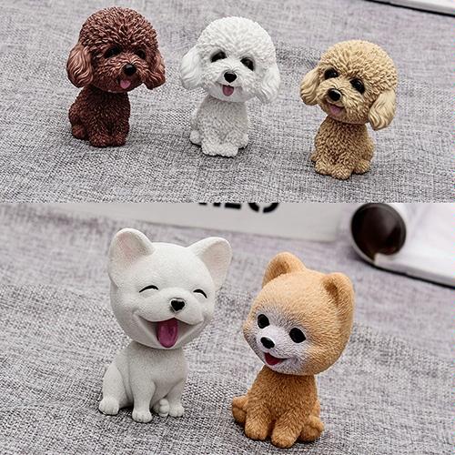 Shaking Head Dog Car Ornaments Resins Lovely Cartoon Dog New Year Gifts with Double-sided Adhesive Tape