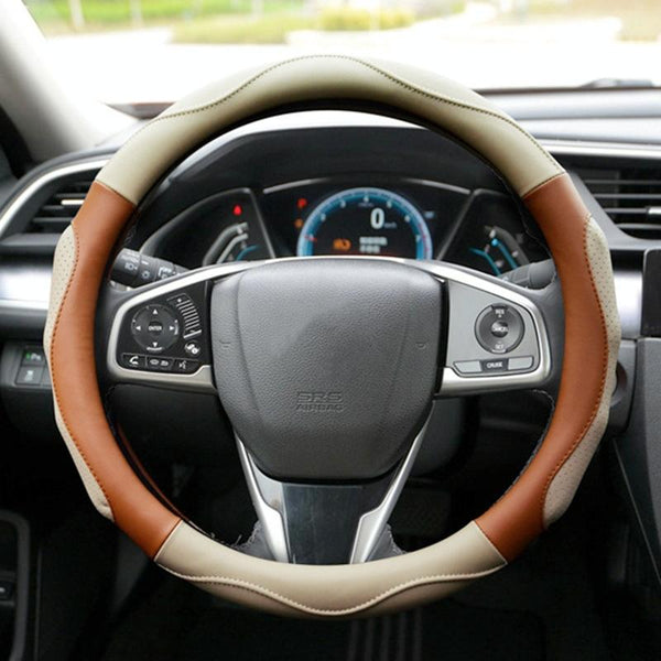 Super Fiber Leather Car Universal Anti-skid Steering Wheel Cover, Diameter: 38cm(Beige Coffee)