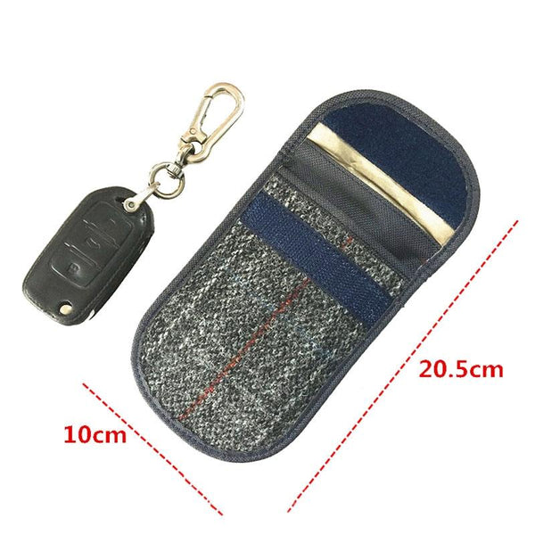Tweed Double Layer RFID Shielded Key Bag With Keychain Anti-theft Anti-Loss Anti-Scanning Key Holder