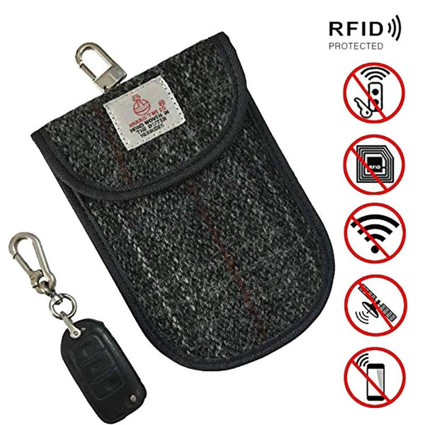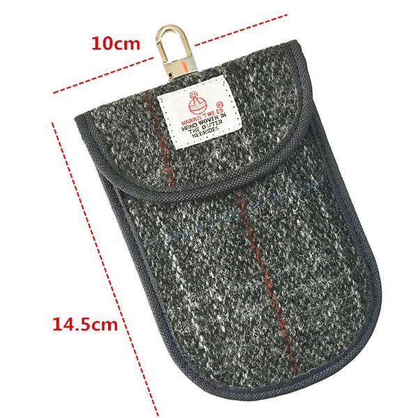 2. Tweed material, back hook and loop design, internal RFID shielding fabric, shielding the car key signal