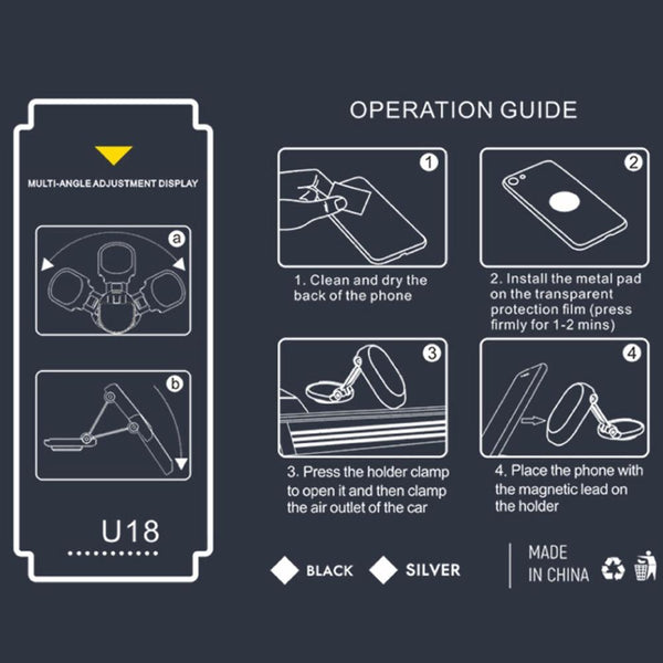 U18 Mini Car Foldable Rotating Magnetic Mobile Phone Navigation Holder(Black)