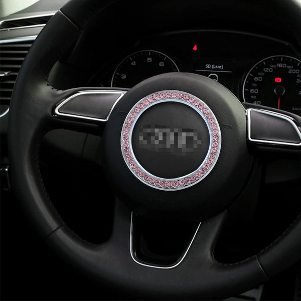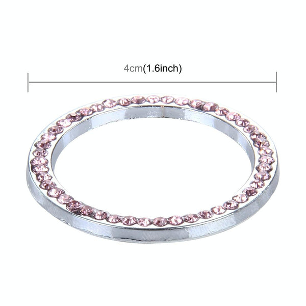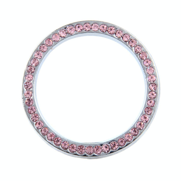 Universal Car Aluminum Steering Wheel Decoration Ring with Diamond For Start Stop Engine System(Pink)
