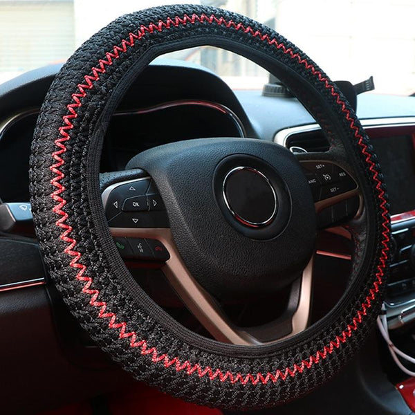 Universal Car Steering Wheel Ice Silk Non-slip Breathable Protective Cover(Red Black)
