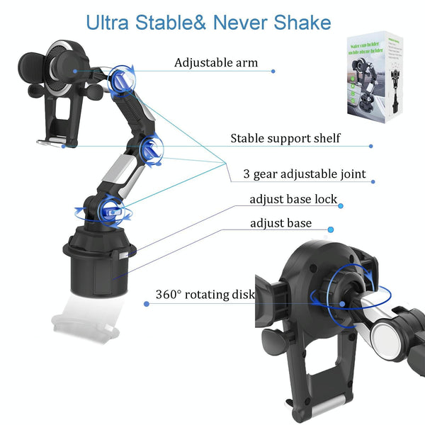 Universal Long Tube 3 Joints Adjustable Car Water Cup Position Cell Phone Holder(S0666A Silver)