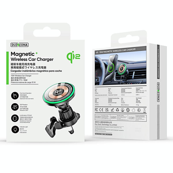 V5 15W Qi2 Air Outlet Car Transparent Magnetic Wireless Charging Holder(Black)
