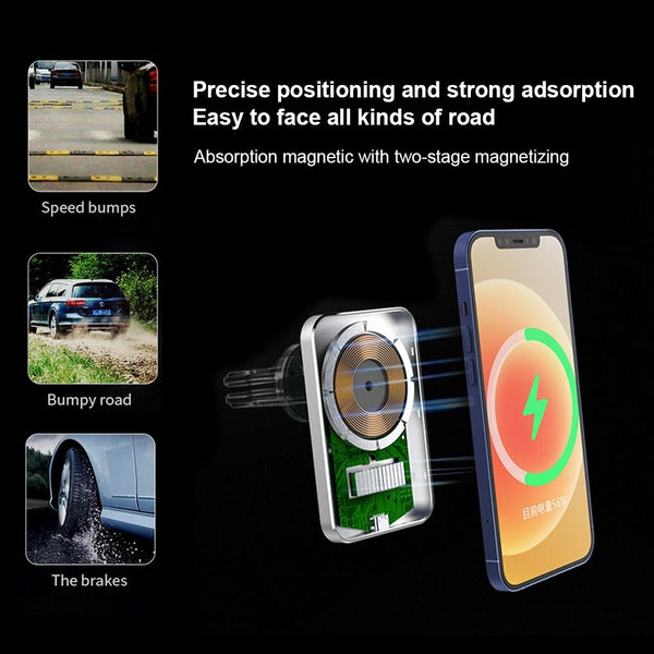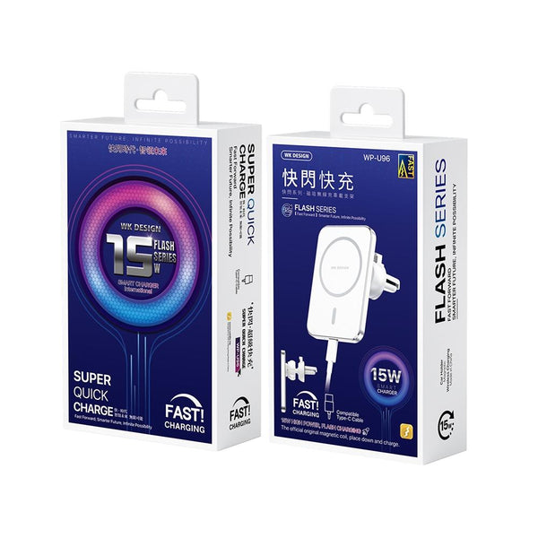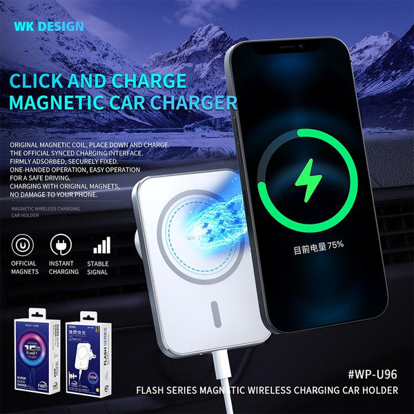 WK WP-U96 Flash Series Magsafe Car Air Outlet Vent Mount Clamp Holder 15W Fast Charging Qi Magnetic Wireless Charger