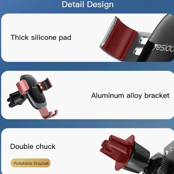 Yesido C122 Car Air Outlet Gravity Clamp Arm Mobile Phone Holder(Black)