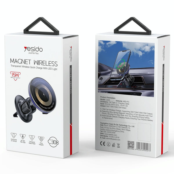 Yesido C308 15W Air Outlet Car MagSafe Magnetic Wireless Charging Holder(Black)