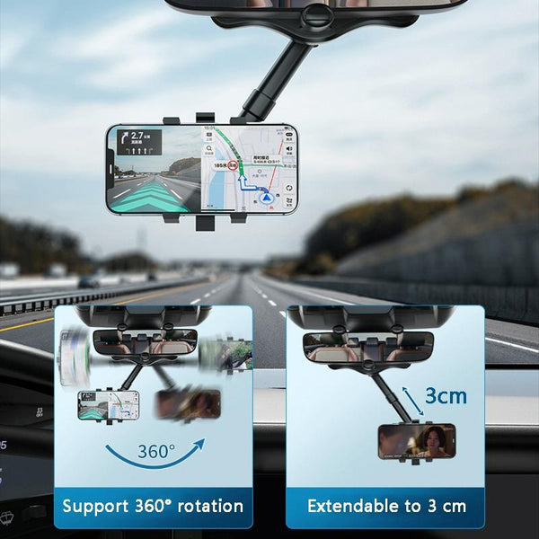 ZJ099 360 Degree Rotating Car Rearview Mirror Phone Holder(Classic Black)