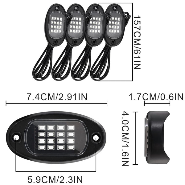 3. Color & 29 kinds of variable modes & custom DIY function & music function (sensitive microphone sound sensitive function, the chassis light will synchronize the sound captured from the microphone, and then the light will change color according to the music rhythm) 4. Durable PVC shell and Rugged PU lens. Fast heat dissipation, durable and good heat resistance. 50,000 hours of service life. IP67 waterproof, shockproof, dustproof, rustproof, and anti-shock.