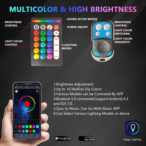 4 in 1 G6 RGB Colorful Car Chassis Light LED Music Atmosphere Light With Dual Control Remote Control