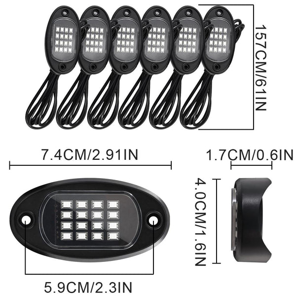 3. Color & 29 kinds of variable modes & custom DIY function & music function (sensitive microphone sound sensitive function, the chassis light will synchronize the sound captured from the microphone, and then the light will change color according to the music rhythm) 4. Durable PVC shell and Rugged PU lens. Fast heat dissipation, durable and good heat resistance. 50,000 hours of service life. IP67 waterproof, shockproof, dustproof, rustproof, and anti-shock.
