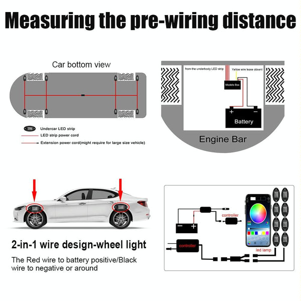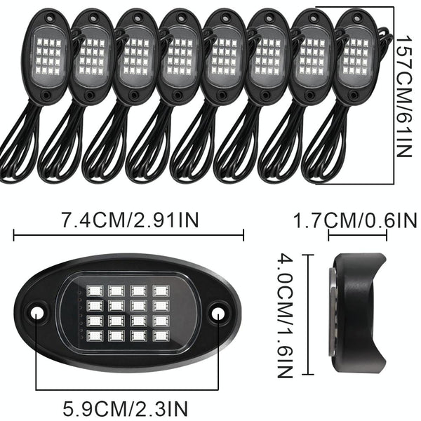 3. Color & 29 kinds of variable modes & custom DIY function & music function (sensitive microphone sound sensitive function, the chassis light will synchronize the sound captured from the microphone, and then the light will change color according to the music rhythm) 4. Durable PVC shell and Rugged PU lens. Fast heat dissipation, durable and good heat resistance. 50,000 hours of service life. IP67 waterproof, shockproof, dustproof, rustproof, and anti-shock.