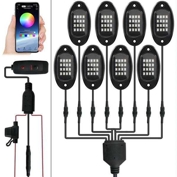 8 in 1 DC12V Car Mobile Phone Bluetooth APP Control RGB Symphony Chassis Light with 16LEDs SMD-5050 Lamp Beads