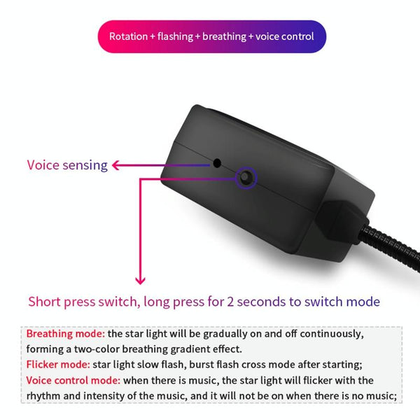 C208 5V 0.1W IPX4 USB Car Rotating Star Lights Red Green Starry Sky Atmosphere Lamp