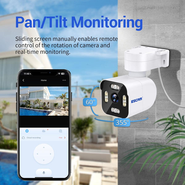 Secure your home with the ESCAM PT303 3MP HD WiFi IP Camera. This powerful camera boasts crystal-clear 2304x1296 resolution with H.265 compression for smooth, detailed footage while minimising bandwidth usage. Benefit from smart features like motion detection, humanoid detection, and tracking, with instant app alerts sent directly to your phone. Two-way audio allows you to communicate remotely, while customisable audible alarms and selectable alarm areas provide added security.