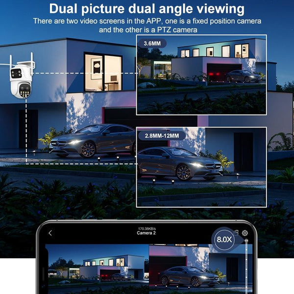 Enhance your home security with this advanced 3MP WiFi Security Camera, featuring AI-powered Human Detection and Colour Night Vision. Capture crystal-clear footage at 2304x2592 resolution, ensuring you never miss a detail. The integrated AI intelligently distinguishes between humans and other objects, minimising false alarms and providing reliable motion detection. Benefit from vivid Colour Night Vision thanks to the innovative bionic mixed light angle warm light infrared design, providing superior clarity even in low-light conditions. Enjoy convenient remote viewing and control via the user-friendly iOS/Android app, supporting two-way audio communication. Store recordings locally on a microSD card (up to 256GB, sold separately) or utilise cloud storage for added peace of mind. This versatile security camera supports dual-screen horizontal viewing for comprehensive monitoring and features advanced noise reduction (2D/3D) for enhanced image quality. Connect seamlessly via WiFi (IEEE802.11b/g/n, 2.4GHz) or Ethernet. Experience advanced security features including humanoid tracking, gun-ball linkage, and real-time mobile alerts. Compatible with NETIP and ONVIF protocols.
