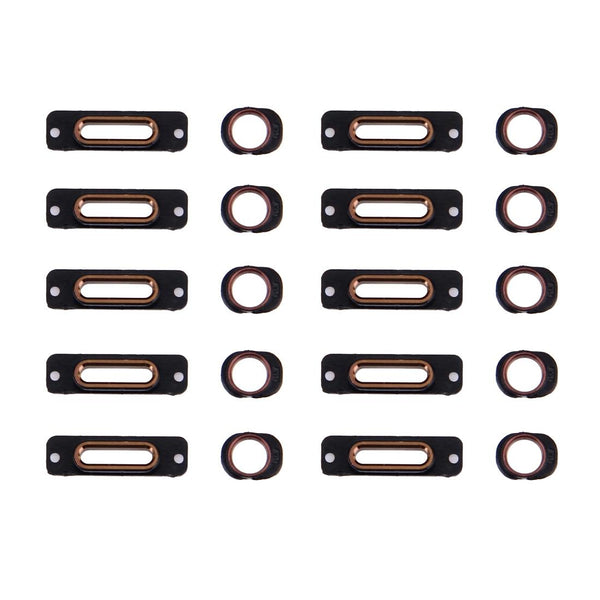 Restore your iPhone SE's functionality with this 10-pack of rose gold charging port brackets and headphone jack rings. This set provides a cost-effective solution for replacing broken or damaged components, ensuring a secure connection for charging and headphone use. Each bracket and ring is inspected for quality before shipping. Professional installation is highly recommended to prevent damage to your device during the repair process. Please note, we are not liable for any damage incurred during installation.