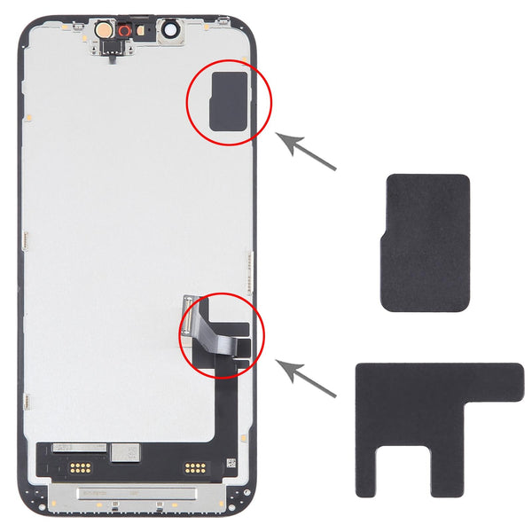 Search Terms: iPhone 14, heat sink, graphite sticker, thermal pad, LCD repair, screen repair, replacement parts, overheating fix, thermal management, bulk pack.