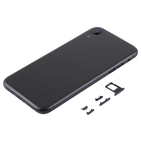 Restore your iPhone XR's pristine condition with this high-quality black back glass replacement. This complete unit includes the camera lens and SIM tray for a hassle-free repair. It's the perfect solution for a cracked, scratched, or damaged back cover, giving your phone a fresh new look.