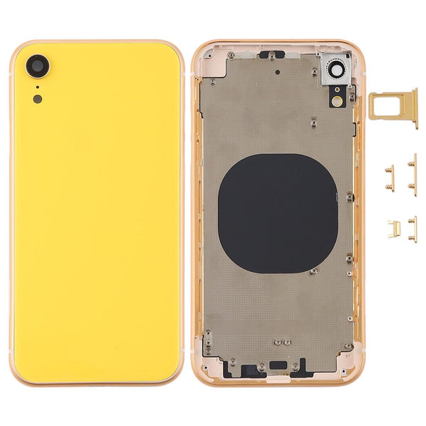 Search terms: iPhone XR, back cover replacement, yellow back cover, iPhone XR repair, iPhone XR parts, camera lens replacement, SIM tray replacement, broken iPhone XR back, iPhone XR back housing.