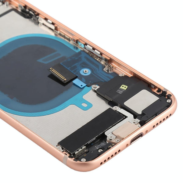 Search terms: iPhone 8, battery cover, back cover, replacement part, rose gold, side keys, power button, volume button, vibrator, loudspeaker, SIM tray, repair, DIY repair, professional installation.