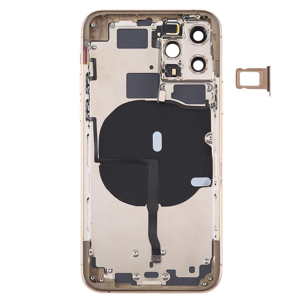 Search terms: iPhone 11 Pro Max, back cover replacement, gold back cover, iPhone repair, wireless charging module, SIM tray, side keys, replacement parts, iPhone parts.