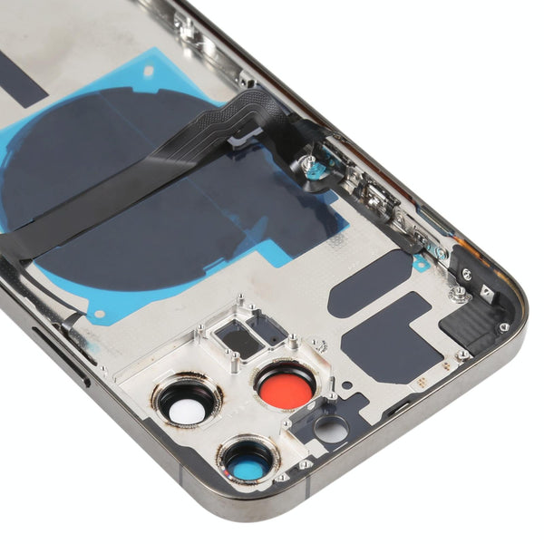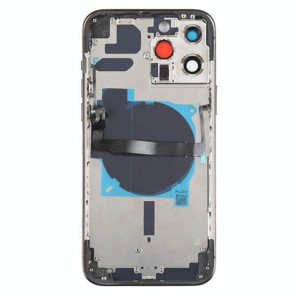 Restore your iPhone 13 Pro Max to its former glory with this premium black battery back cover. This comprehensive replacement includes side keys, a SIM card tray, power and volume flex cable, and a fully functional wireless charging module. Perfect for repairing a cracked, damaged, or malfunctioning rear housing, this high-quality part ensures a seamless fit and optimal performance.