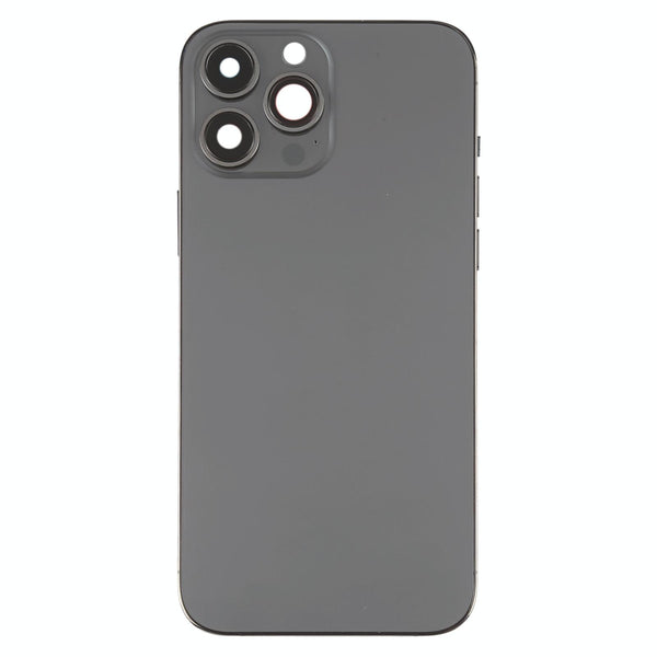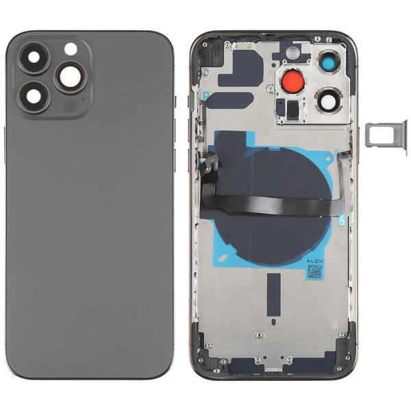 Search Terms: iPhone 13 Pro Max, back cover replacement, battery cover, rear housing, black, wireless charging, side keys, SIM card tray, repair, parts.