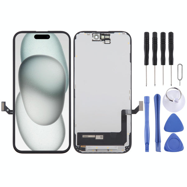 Replace your cracked or damaged iPhone 15 screen with this high-quality OLED LCD and digitizer assembly. This replacement part restores your phone's vibrant display and touch functionality, making it look and feel like new again.