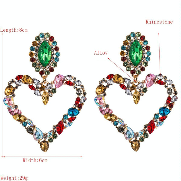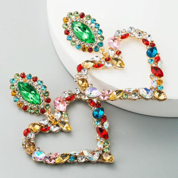 1 Pair Heart Shaped Alloy Retro Earrings With Colored Rhinestone Flashing Full Rhinestone Earrings(Color)