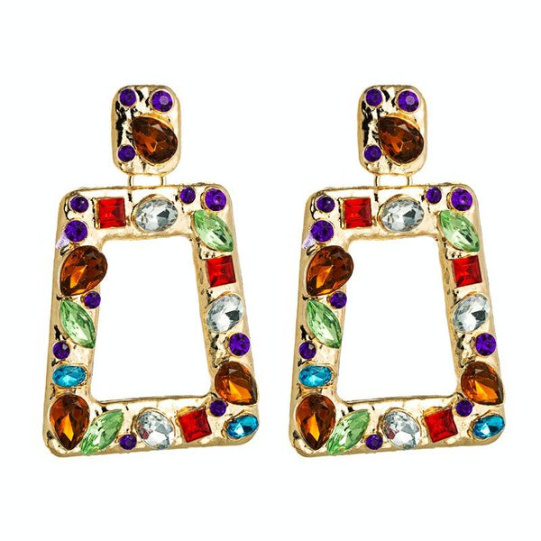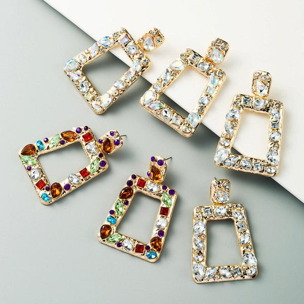 1 Pair Hollow Geometric Square Earrings Alloy Inlaid Color Rhinestone Earrings(Color)