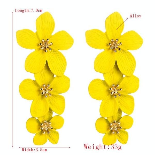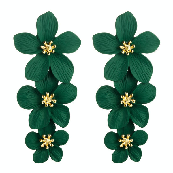 1 Pair Multilayer Flower Earrings Alloy Paint Long Earrings(Dark Green)