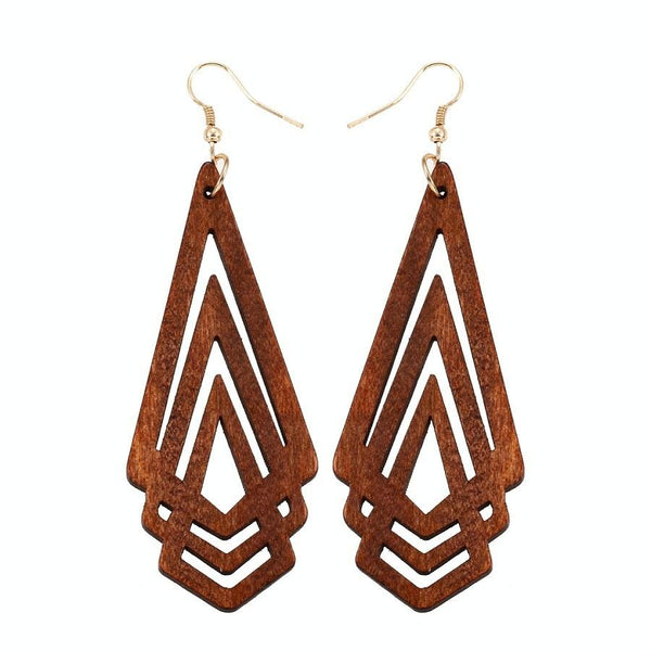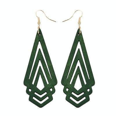 1 Pair Natural Wooden Earrings Geometic Hollow Triangle Personality Simple Fashion Jewelry For Woman, Metal Color:Green