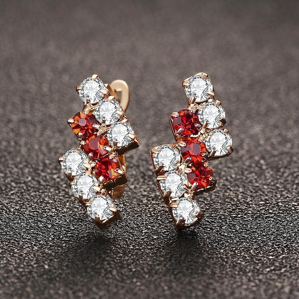 1 Pair Of 18 k Gold Irregular Geometrical Sterling Silver Crystal Stud Earring For Women, 21*9 mm(red)