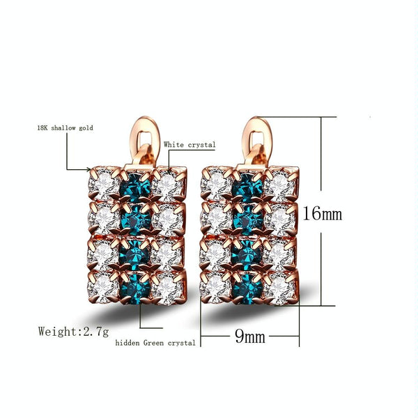 1 Pair Of 18 k Gold Rectangle Shape Sterling Silver Crystal Stud Earring For Women, 16*9 mm(Gold)