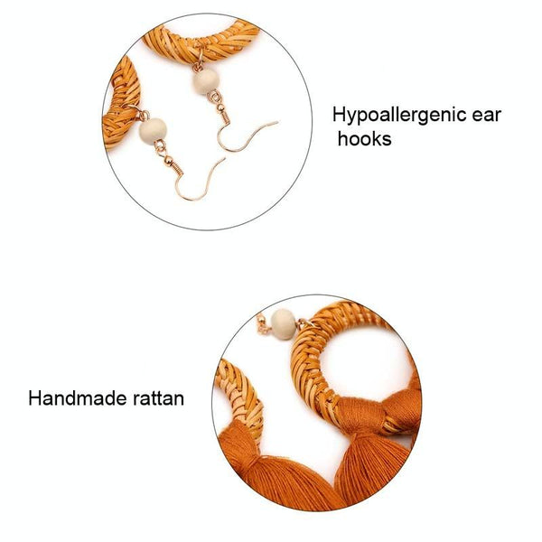 1 Pairs Ethnic Style Cotton Tassel Earrings Exaggerated Earrings Long Earrings( Pink)