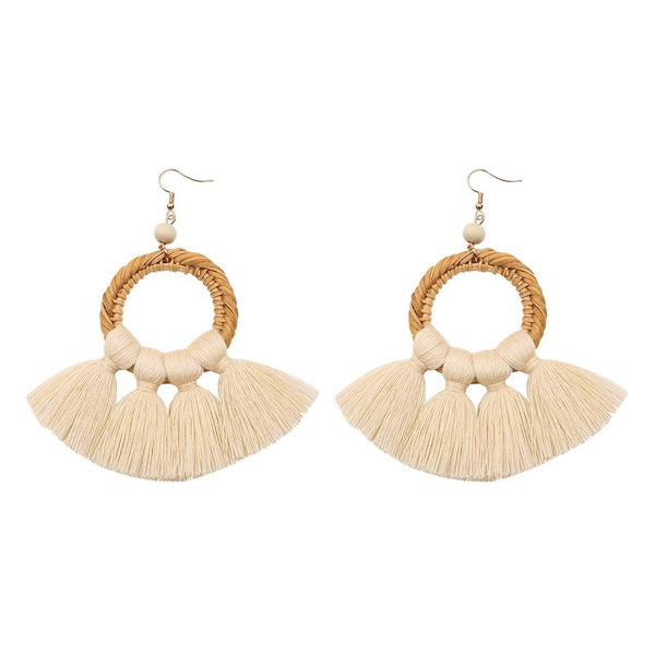 1 Pairs Ethnic Style Cotton Tassel Earrings Exaggerated Earrings Long Earrings(Beige)