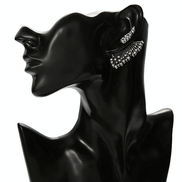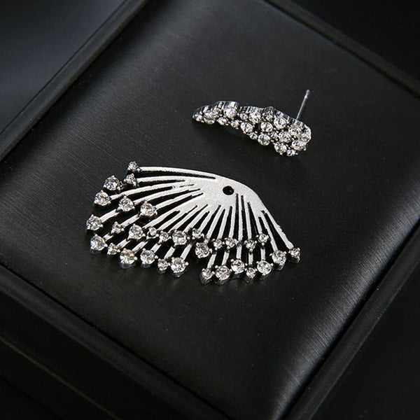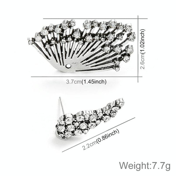 1 PCS Women Diamond-shape Silver Flower Fan-sharped Asymmetric Stud Earrings