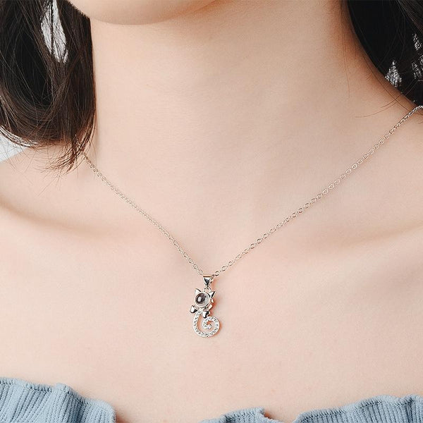 100 Language I love You Necklace Memory Projection Pendant Wedding Letter Necklace(White Copper)