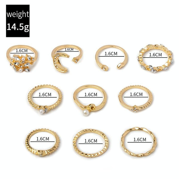 10pcs/set Moon Star Leaves Heart Rhinestone Knuckle Ring(SKU5900)