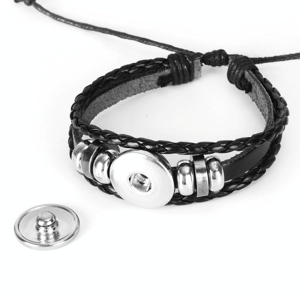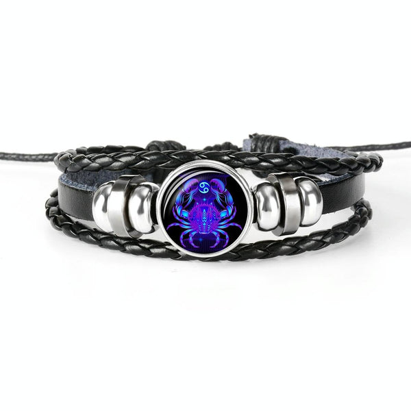 12 Constellation Black Braided Leather Glass Dome Punk Men Bracelet(Cancer)