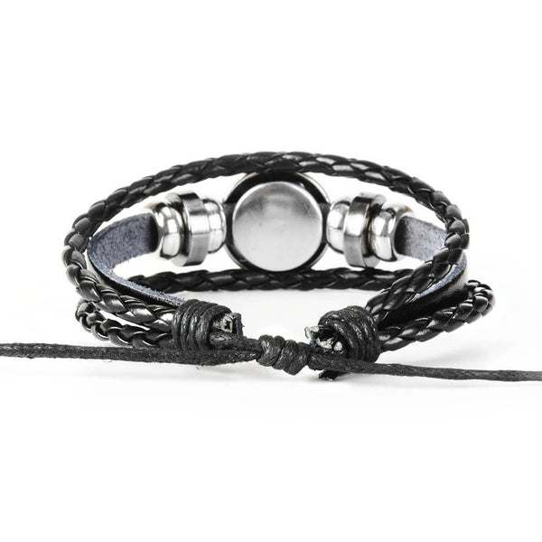 12 Constellation Black Braided Leather Glass Dome Punk Men Bracelet(Sagittarius)