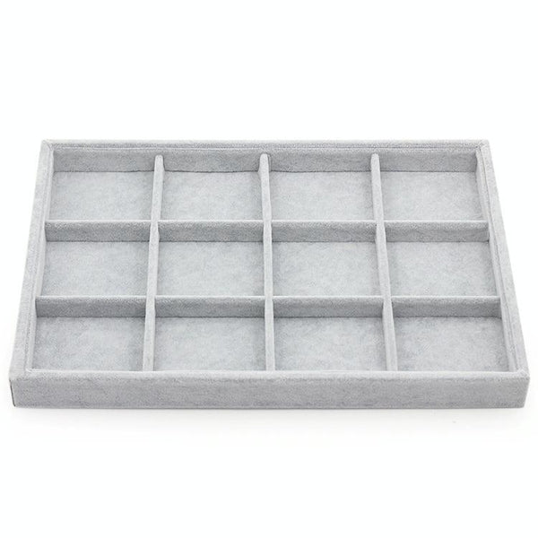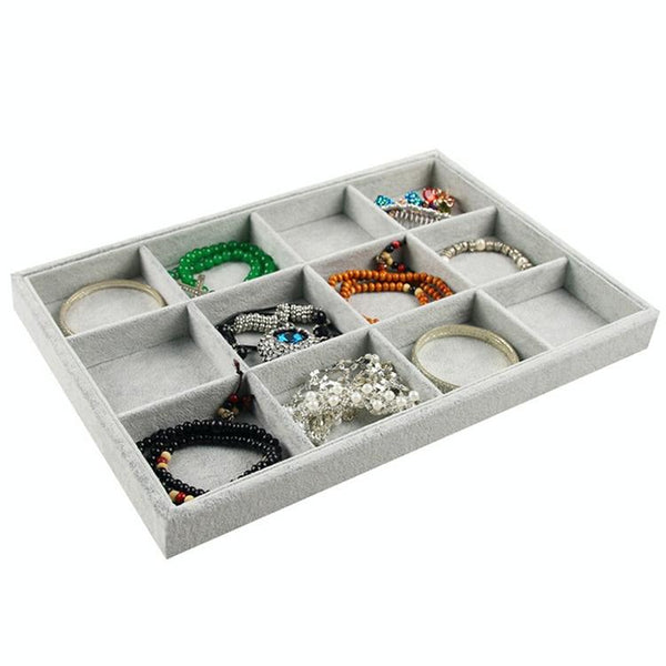 12 Grids Flannelette Bracelet Ring Necklace Display Rack Jewelry Storage Tray